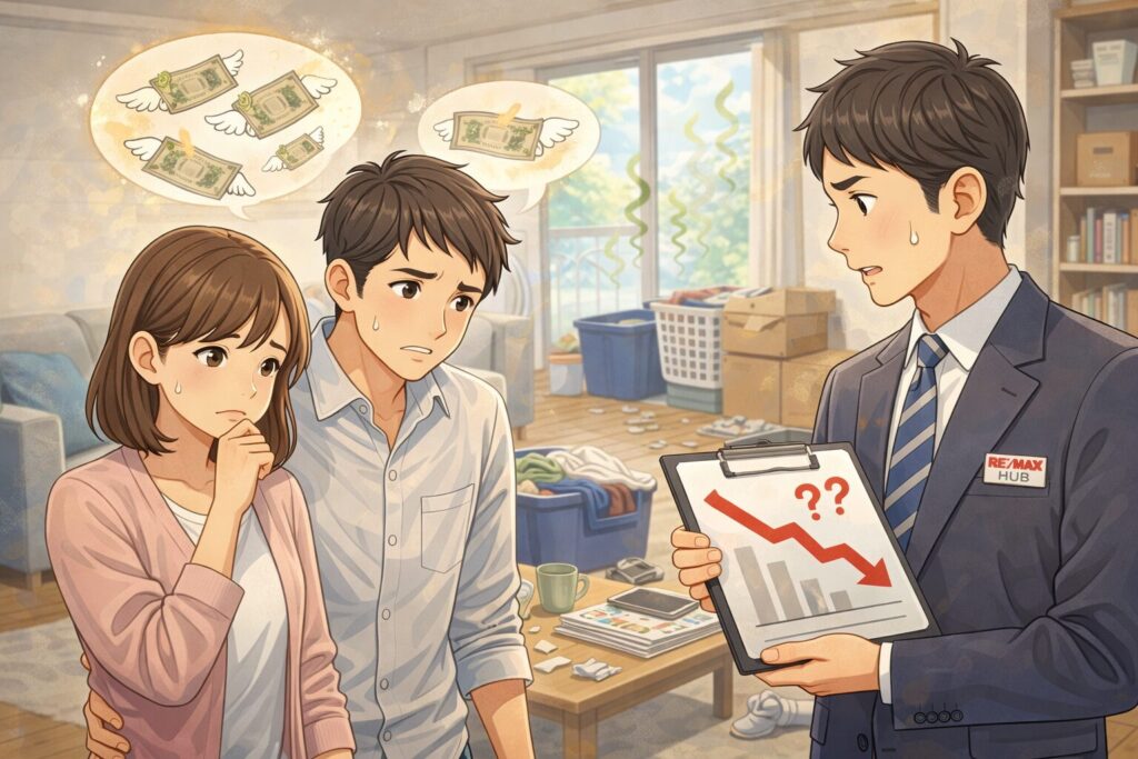 「居住中のまま売却 → 反応が悪い → 値下げ」