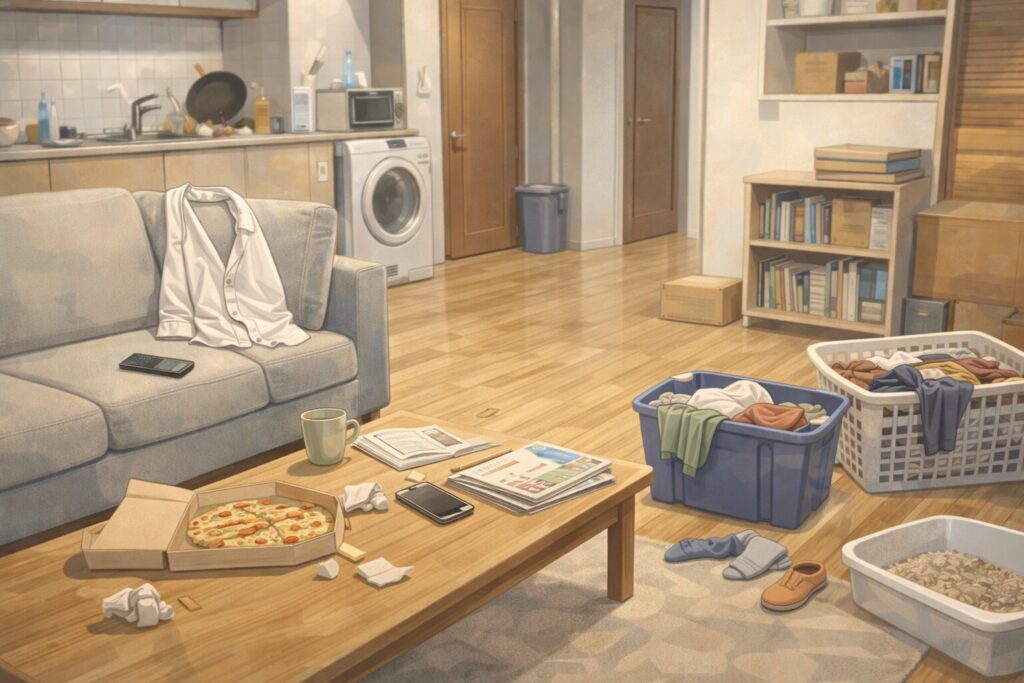 床に物が散乱していたり、