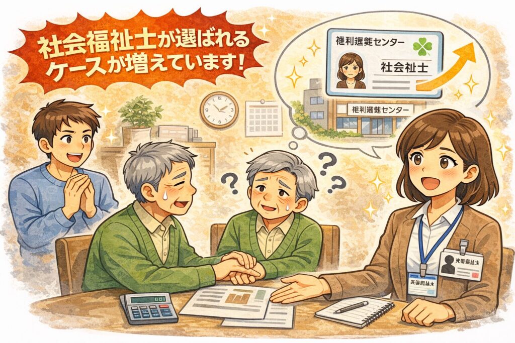 社会福祉士最近は社会福祉士が選ばれるケースも増えているようです。