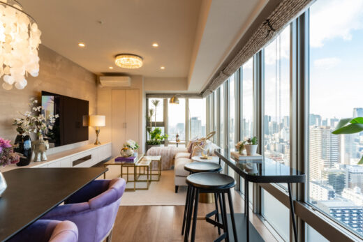 34階・北西角部屋ならではの開放感あふれる住戸からは、大阪城を望むダイナミックな眺望が広がります。