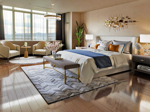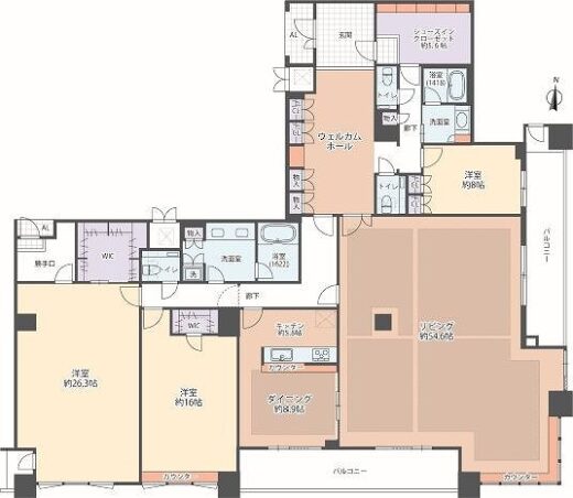 主寝室は、26.3帖のゆとりある広さなので、トリプルベッドやドレッサーを置けますね。